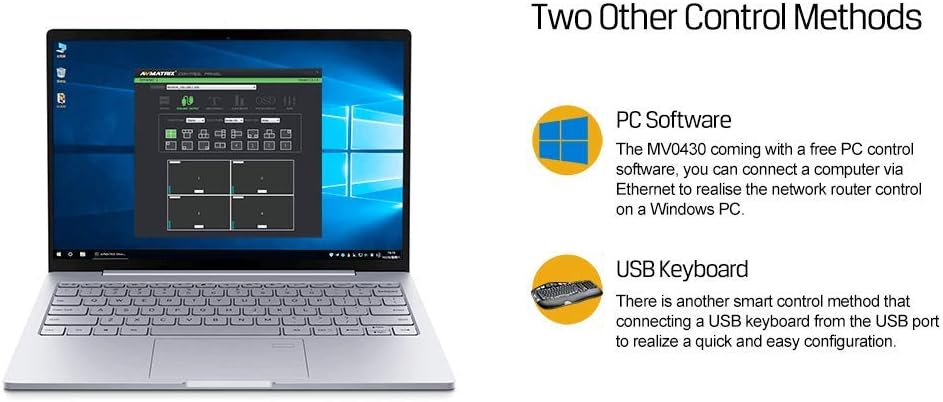 • Control easily via the DIP switches, USB keyboard and PC software