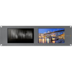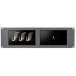 The Blackmagic Design SmartScope Duo 4K Rack-Mounted Dual 6G-SDI Monitors is a monitoring solution for studio and location productions, displaying video with resolutions up to 3840 x 2160 at 30p. It features two 8″ monitors each with a loop-through SDI input and output. The inputs are auto-sensing/selecting so you don’t have to worry about matching the input format; the monitor will display any supported format that you feed it. You can choose to select to display either the input video or one of six scope displays, while the input video passes through the monitor to downstreamed devices.
