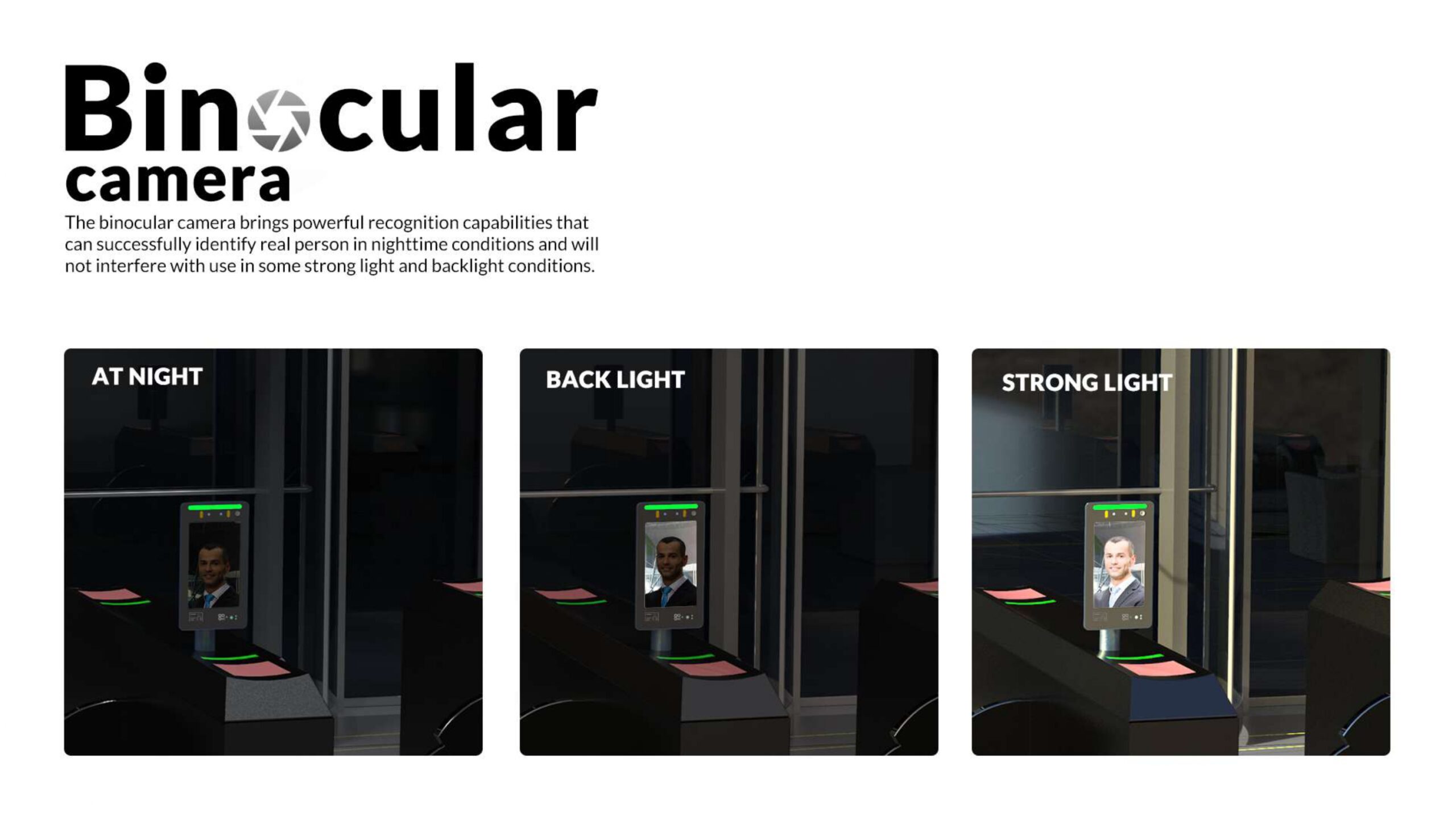| Recognition Mode | Offline Dynamic Portrait Mode + Double Eye Check Counterfeit Mode |